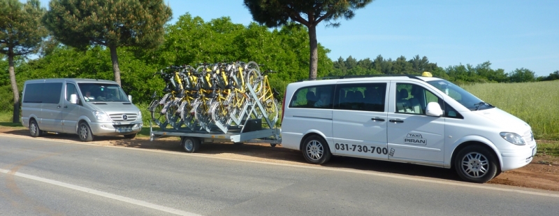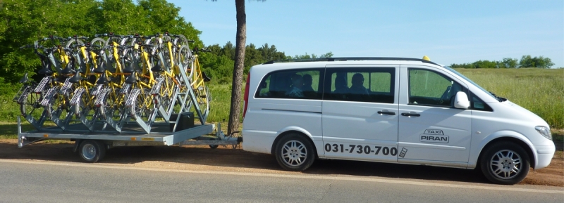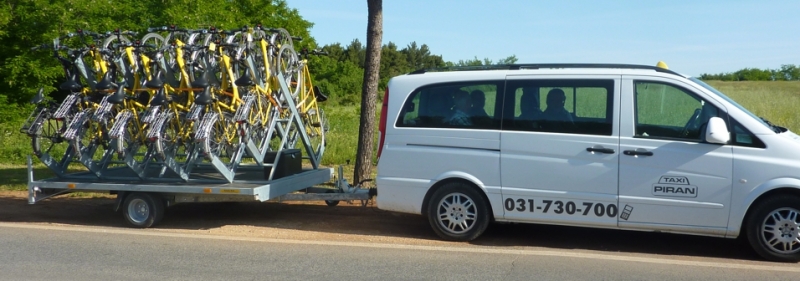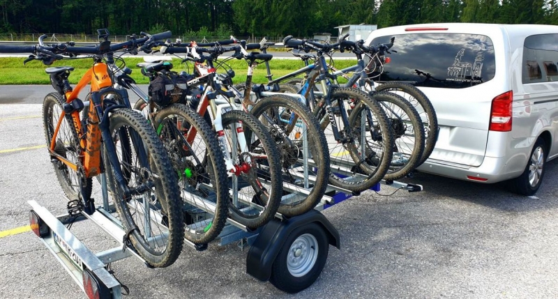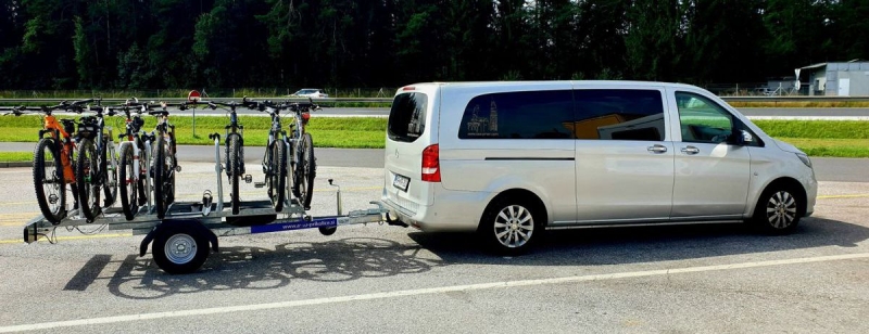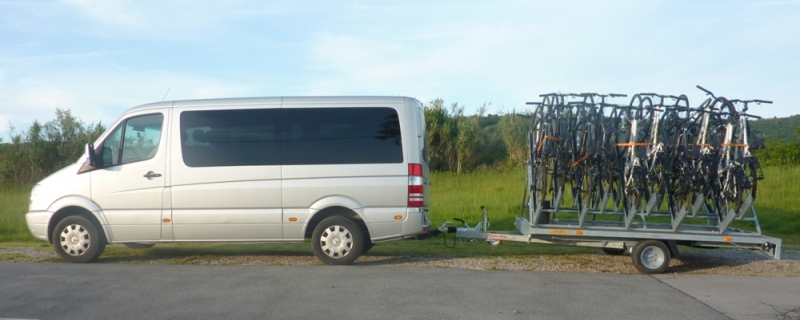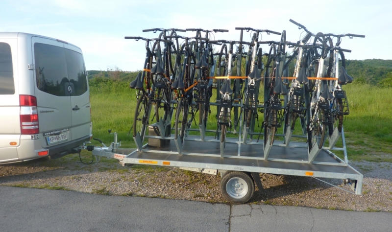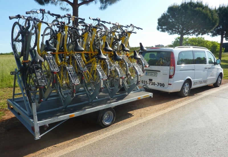 Rimorchio per 20 biciclette, 6 carelli per 8 biciclette e portabici per 4 biciclette
